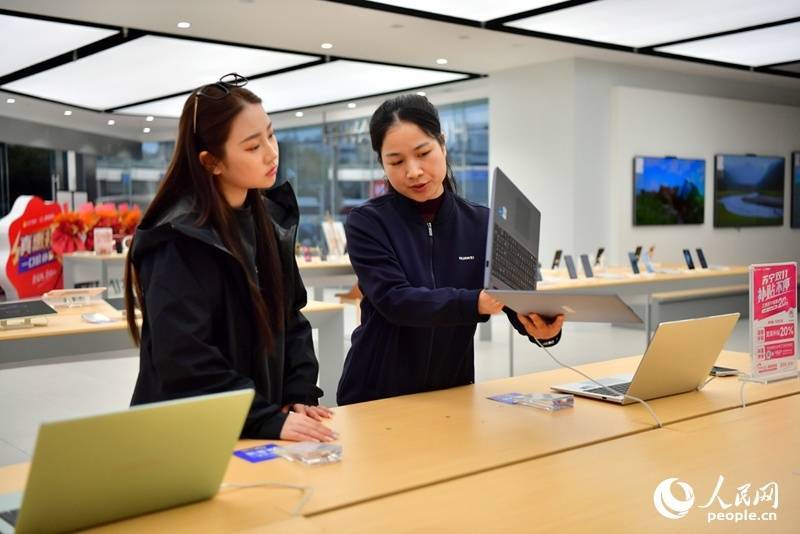 8、一家新开业的家电实体店内,店员正在向顾客介绍电子产品。人民网记者 时雨摄