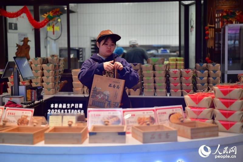 在绳金塔历史文化街区,百年老店品香斋的旗舰店门前排起长队。汉服元素包装的蛋黄麻花、蛋黄酥不仅保留了“小时候的味道”,更受到当下年轻人的追捧。2024年开业的这家旗舰店,通过场景还原和国风设计,让销量实现了150%的惊人增长。