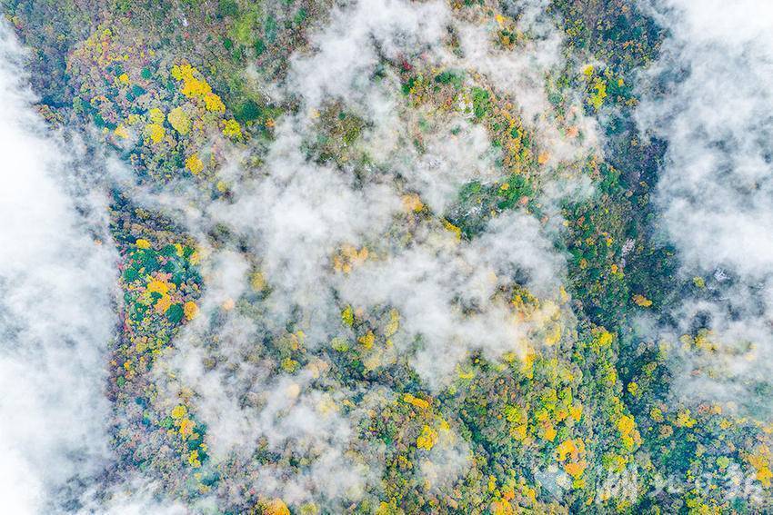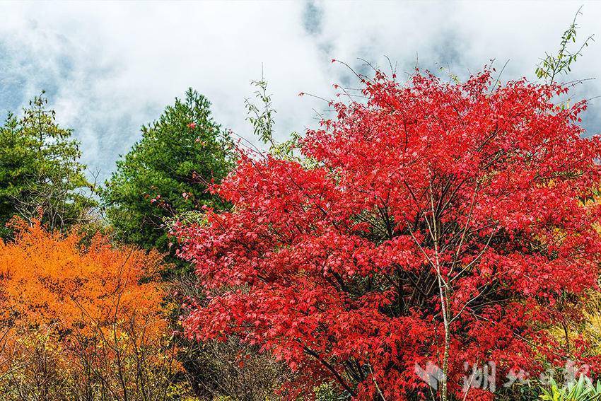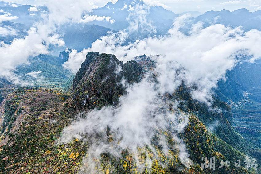 湖北日报客户端讯(通讯员吴以红、范宏霞 )深秋时节,巴东小神农架宛如一幅绚丽多彩的画卷。秋风如同神奇的画笔,肆意挥洒在小神农架的每一个角落,山峦被点染成五彩斑斓的模样。从谷底到山巅,各色树木漫山铺就,犹如打翻的调色盘,美不胜收。